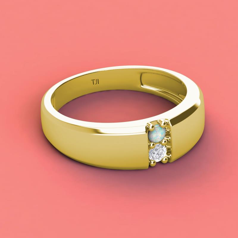 Round Opal and White Sapphire 0.23 ctw High Polished 2 Stone Men Wedding Band 10K Yellow Gold More Details ...