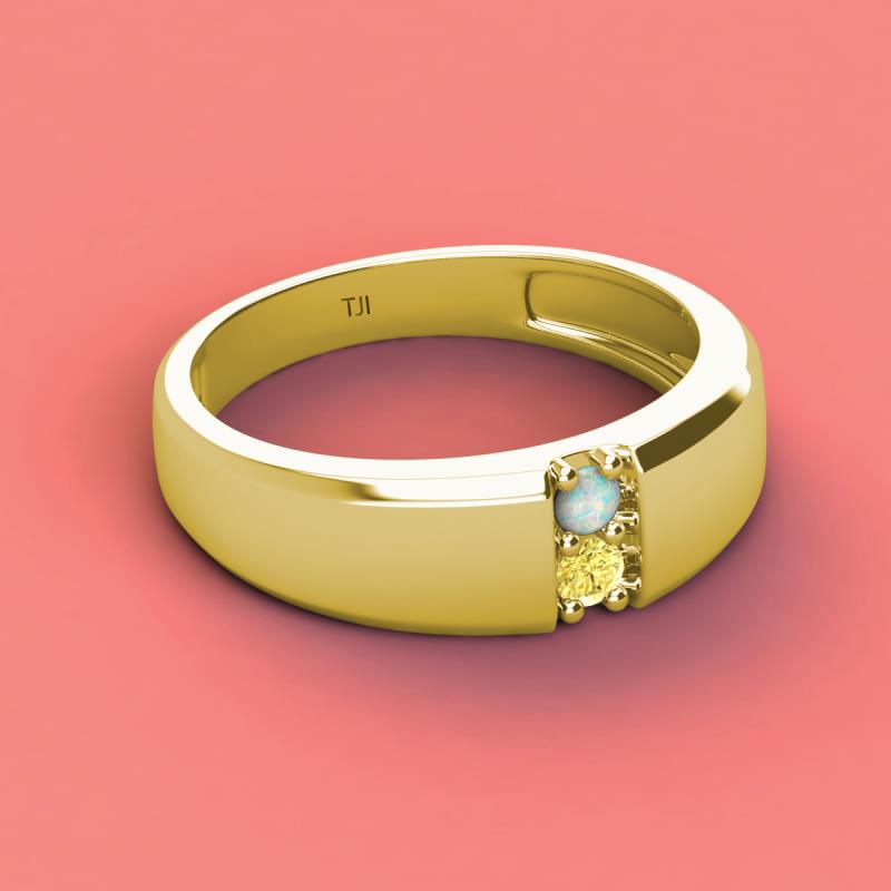 Round Opal and Yellow Sapphire 0.23 ctw High Polished 2 Stone Men Wedding Band 10K Yellow Gold More Details ...