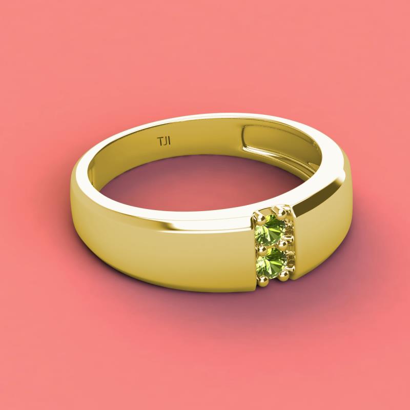 Round Peridot 0.23 ctw High Polished 2 Stone Men Wedding Band 18K Yellow Gold More Details ...