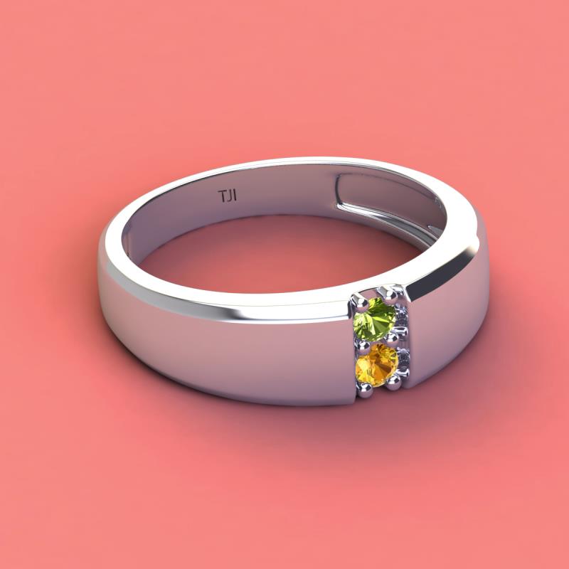 Round Peridot and Citrine 0.22 ctw High Polished 2 Stone Men Wedding Band 925 Sterling Silver More Details ...