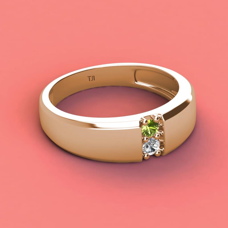 Round Peridot and Forever Brilliant Moissanite 0.21 ctw High Polished 2 Stone Men Wedding Band 14K Rose Gold More Details ...