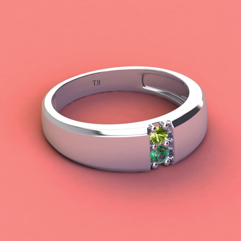 Round Peridot and Lab Created Alexandrite 0.28 ctw High Polished 2 Stone Men Wedding Band 14K White Gold More Details ...