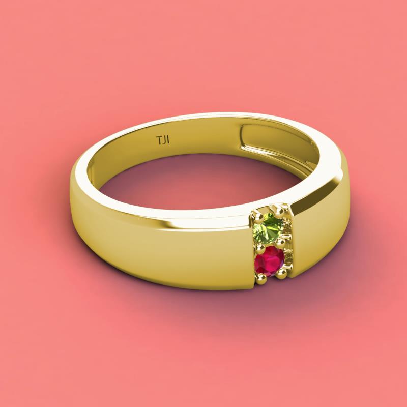 Round Peridot and Ruby 0.22 ctw High Polished 2 Stone Men Wedding Band 18K Yellow Gold More Details ...