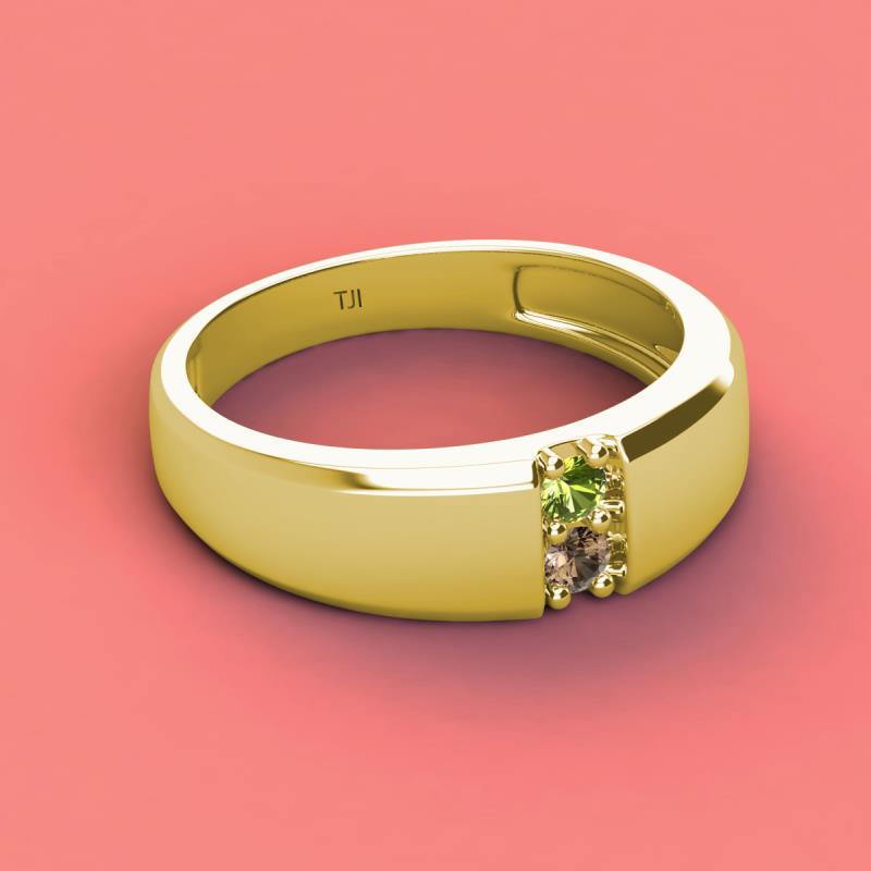 Round Peridot and Smoky Quartz 0.22 ctw High Polished 2 Stone Men Wedding Band 10K Yellow Gold More Details ...