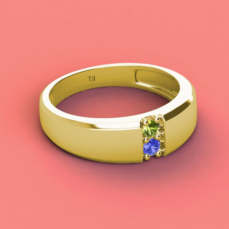 Round Peridot and Tanzanite 0.21 ctw High Polished 2 Stone Men Wedding Band 18K Yellow Gold More Details ...