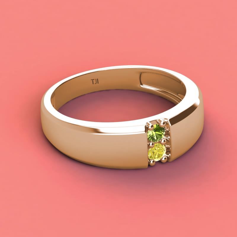 Round Peridot and Yellow Diamond 0.22 ctw High Polished 2 Stone Men Wedding Band 10K Rose Gold More Details ...