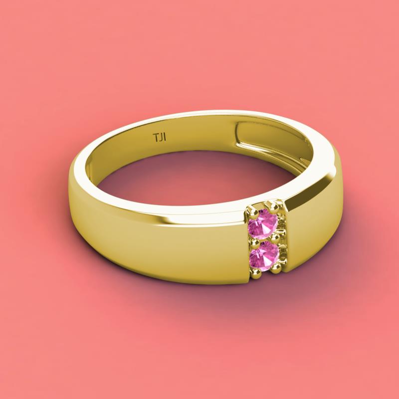 Round Pink Sapphire 0.34 ctw High Polished 2 Stone Men Wedding Band 18K Yellow Gold More Details ...