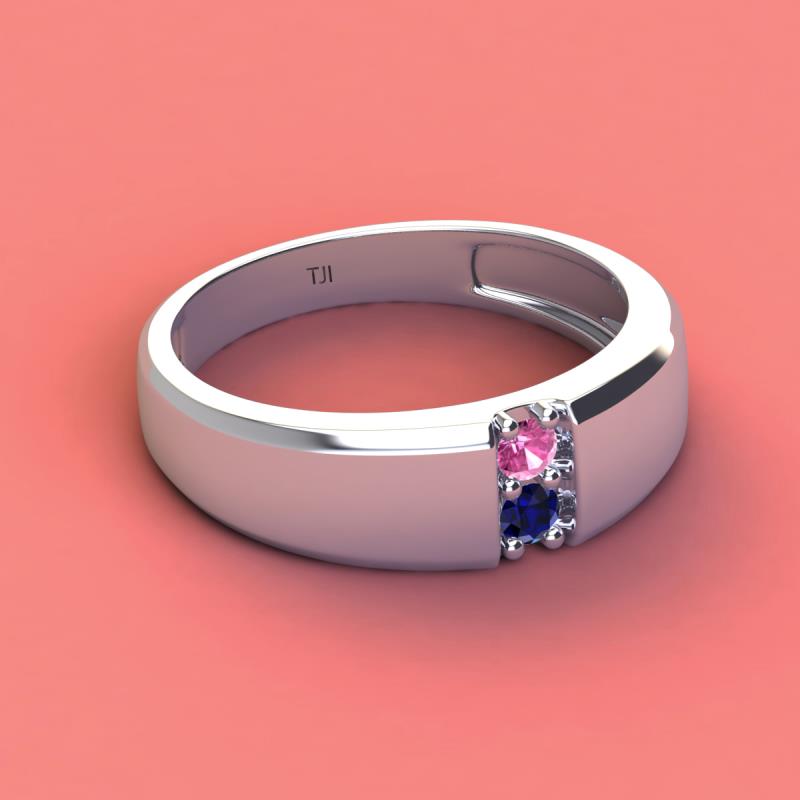 Round Pink Sapphire and Blue Sapphire 0.28 ctw High Polished 2 Stone Men Wedding Band Sterling Silver More Details ...