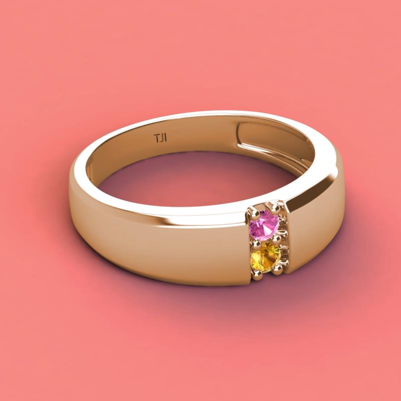 Round Pink Sapphire and Citrine 0.25 ctw High Polished 2 Stone Men Wedding Band 10K Rose Gold More Details ...
