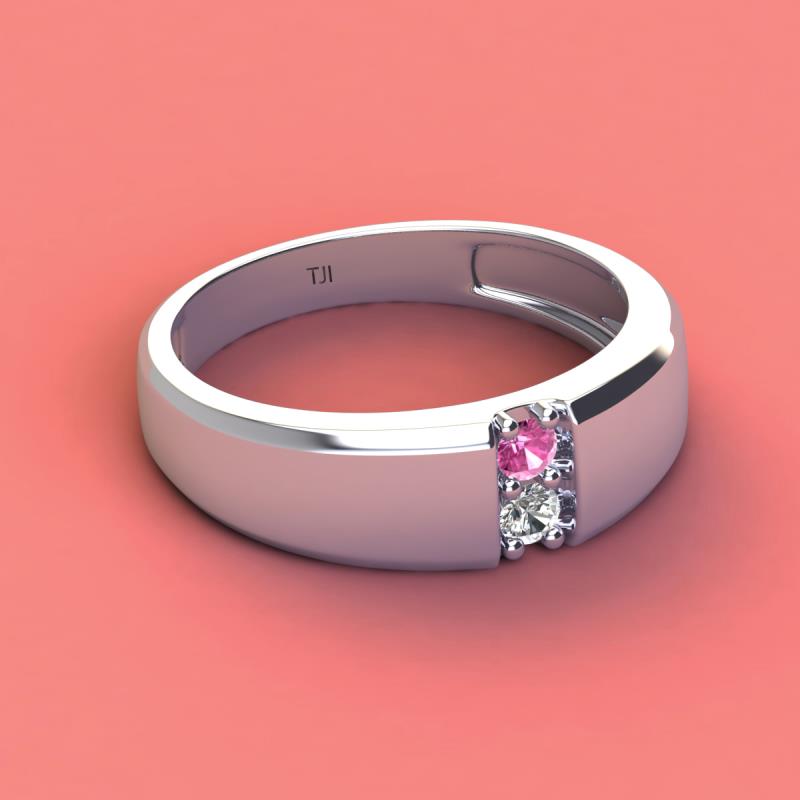 Round Pink Sapphire and Diamond 0.27 ctw High Polished 2 Stone Men Wedding Band Platinum More Details ...