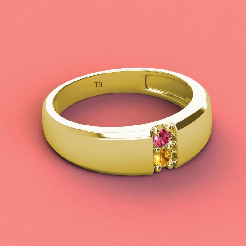 Round Pink Tourmaline and Citrine 0.16 ctw High Polished 2 Stone Men Wedding Band 14K Yellow Gold More Details ...
