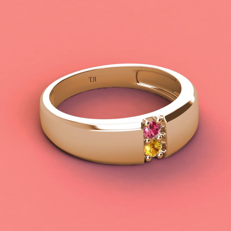 Round Pink Tourmaline and Citrine 0.16 ctw High Polished 2 Stone Men Wedding Band 18K Rose Gold More Details ...