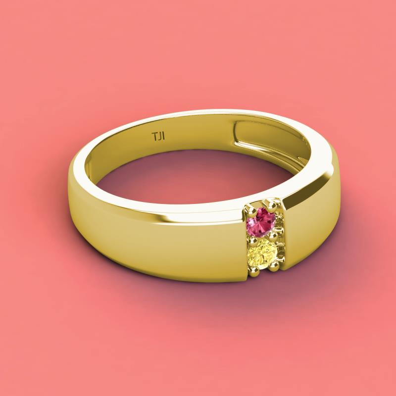 Round Pink Tourmaline and Yellow Sapphire 0.25 ctw High Polished 2 Stone Men Wedding Band 14K Yellow Gold More Details ...