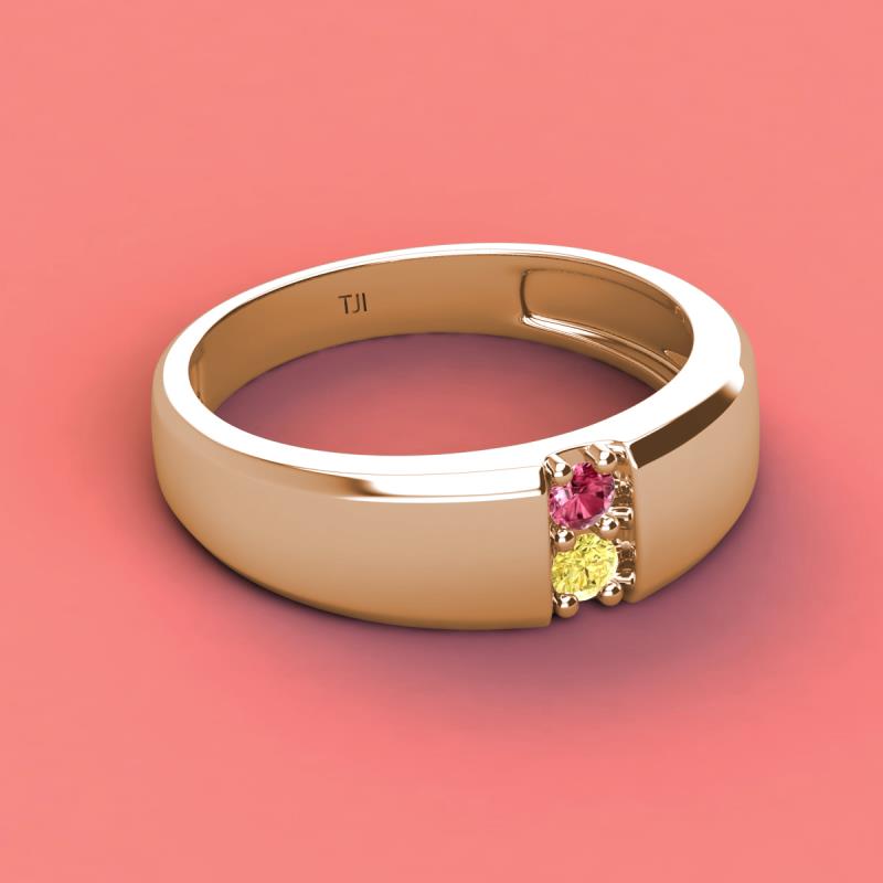 Round Pink Tourmaline and Yellow Sapphire 0.25 ctw High Polished 2 Stone Men Wedding Band 10K Rose Gold More Details ...