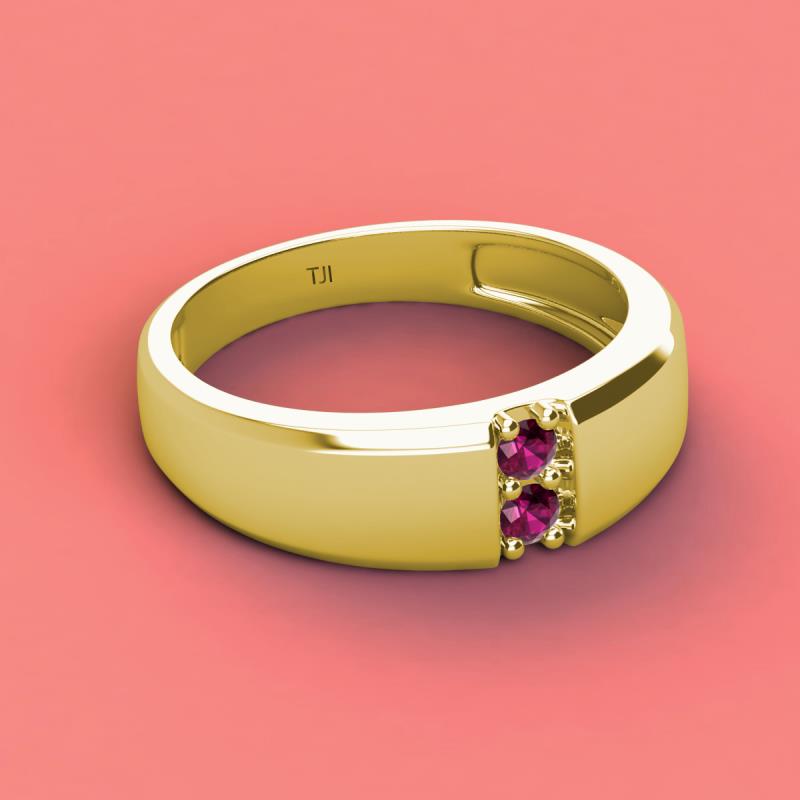 Round Rhodolite Garnet 0.23 ctw High Polished 2 Stone Men Wedding Band 10K Yellow Gold More Details ...