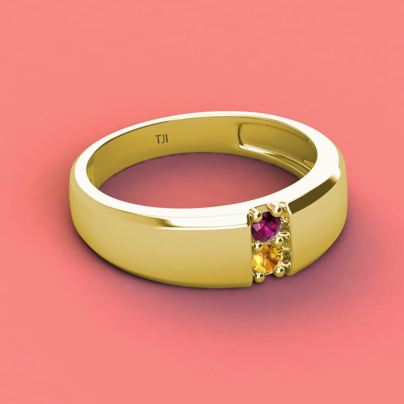 Round Rhodolite Garnet and Citrine 0.20 ctw High Polished 2 Stone Men Wedding Band 10K Yellow Gold More Details ...