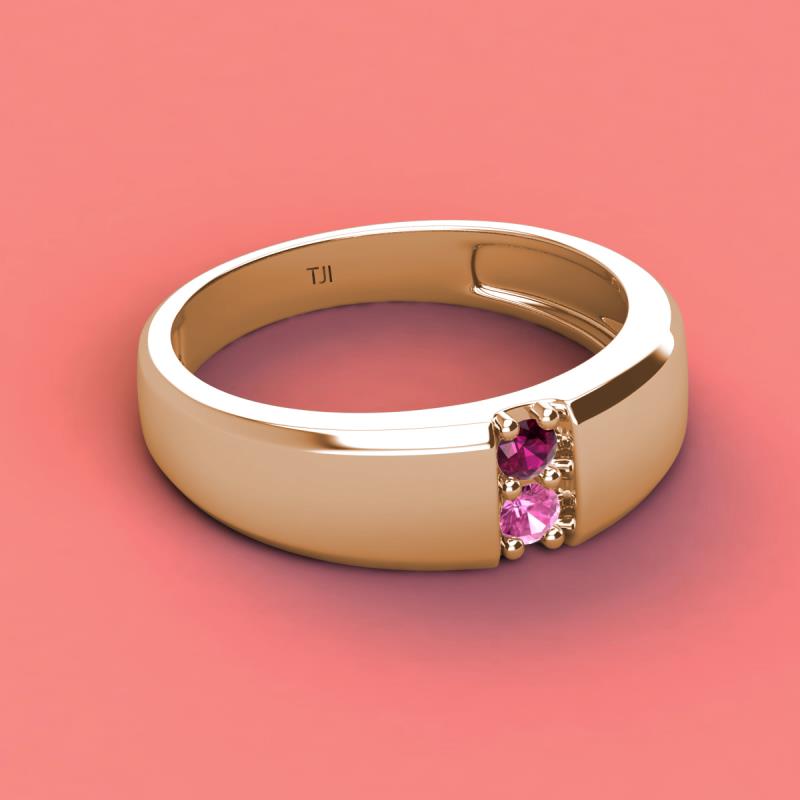 Round Rhodolite Garnet and Pink Sapphire 0.29 ctw High Polished 2 Stone Men Wedding Band 10K Rose Gold More Details ...