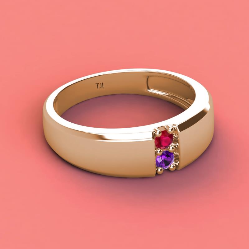 Round Ruby and Amethyst 0.19 ctw High Polished 2 Stone Men Wedding Band 14K Rose Gold More Details ...