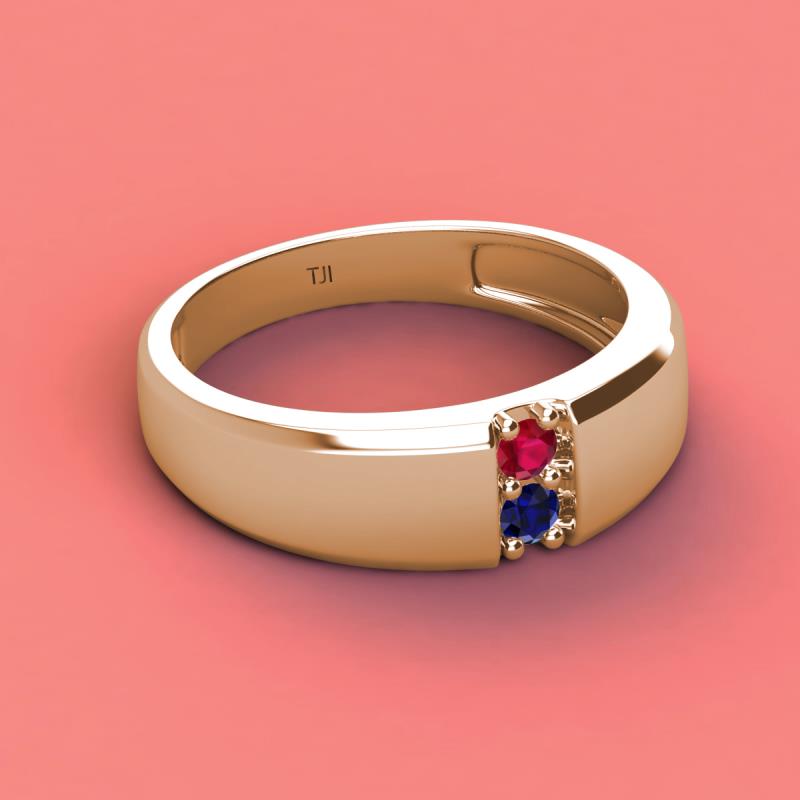 Round Ruby and Blue Sapphire 0.21 ctw High Polished 2 Stone Men Wedding Band 14K Rose Gold More Details ...