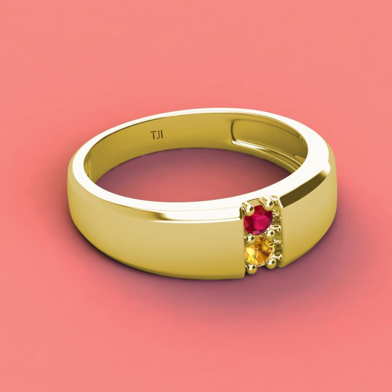 Round Ruby and Citrine 0.19 ctw High Polished 2 Stone Men Wedding Band 10K Yellow Gold More Details ...