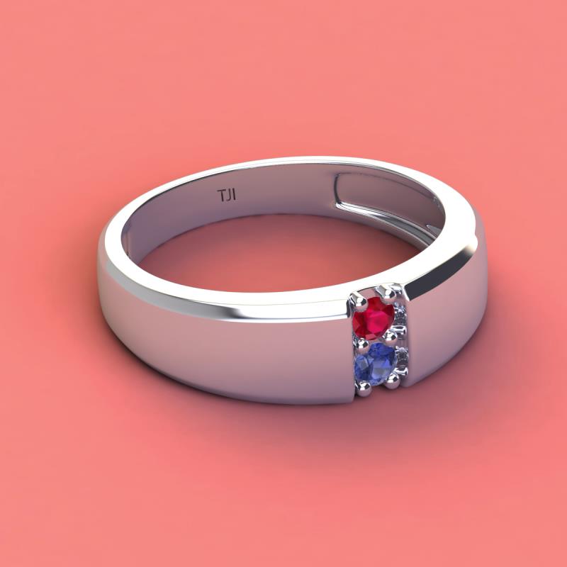 Round Ruby and Iolite 0.19 ctw High Polished 2 Stone Men Wedding Band Platinum More Details ...
