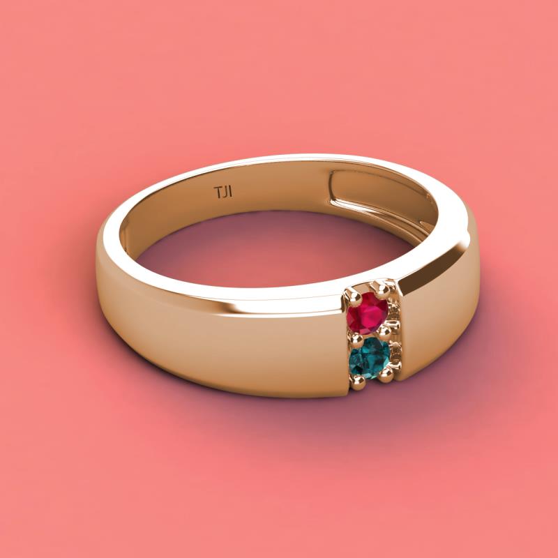Round Ruby and London Blue Topaz 0.22 ctw High Polished 2 Stone Men Wedding Band 18K Rose Gold More Details ...