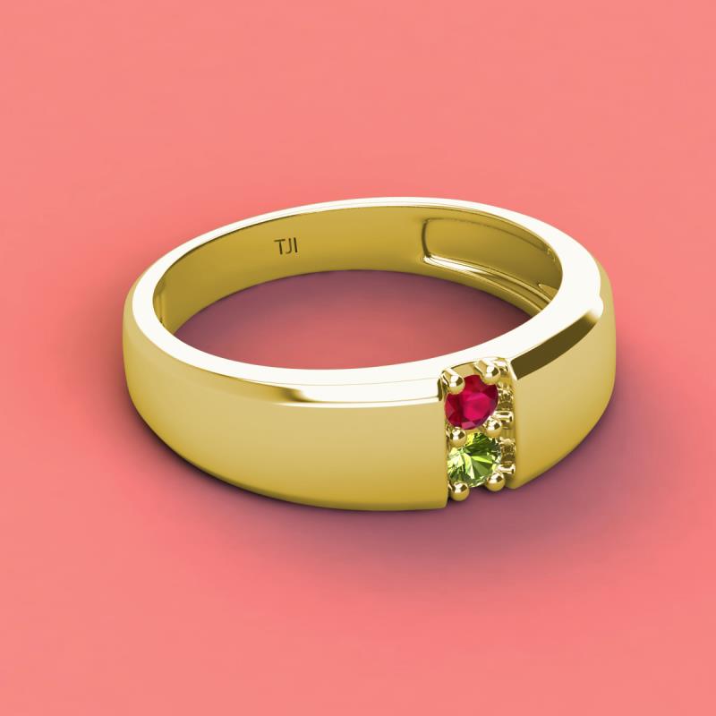 Round Ruby and Peridot 0.22 ctw High Polished 2 Stone Men Wedding Band 14K Yellow Gold More Details ...