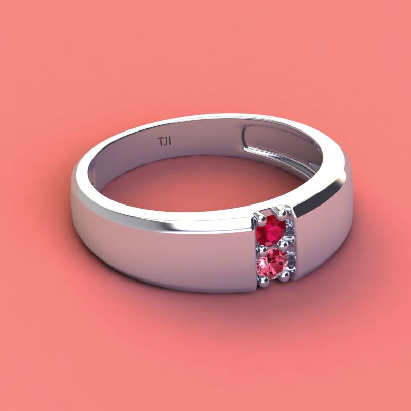 Round Ruby and Pink Tourmaline 0.19 ctw High Polished 2 Stone Men Wedding Band 14K White Gold More Details ...