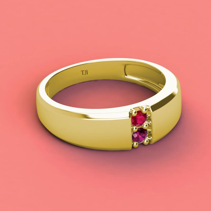 Round Ruby and Rhodolite Garnet 0.22 ctw High Polished 2 Stone Men Wedding Band 10K Yellow Gold More Details ...