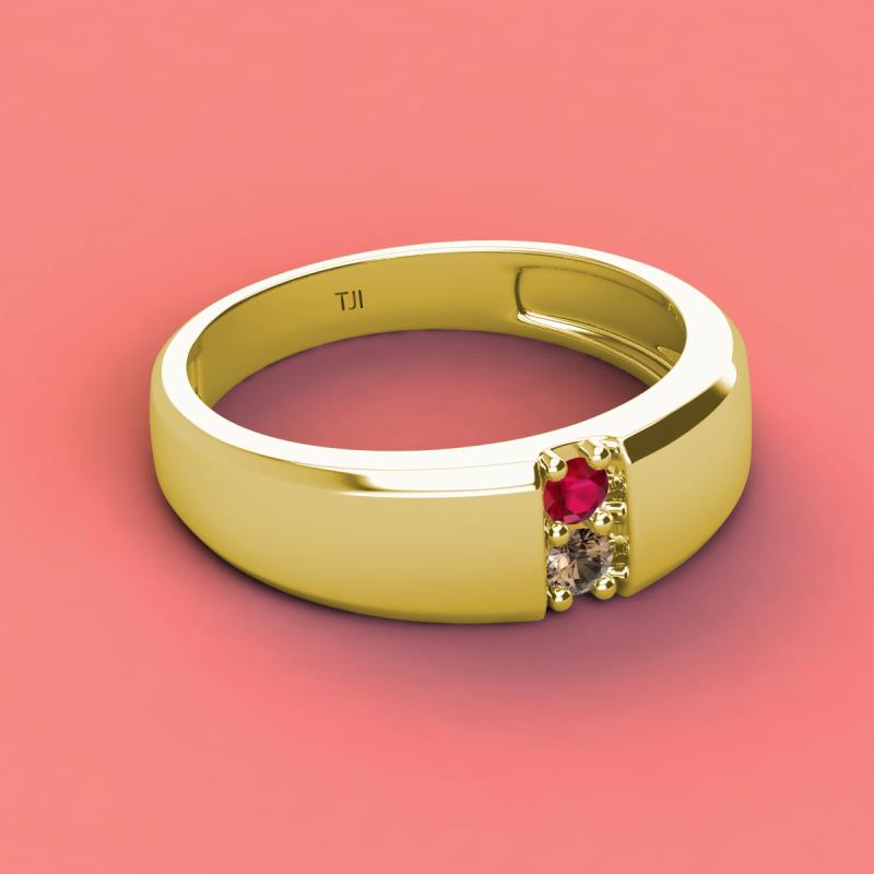 Round Ruby and Smoky Quartz 0.21 ctw High Polished 2 Stone Men Wedding Band 10K Yellow Gold More Details ...