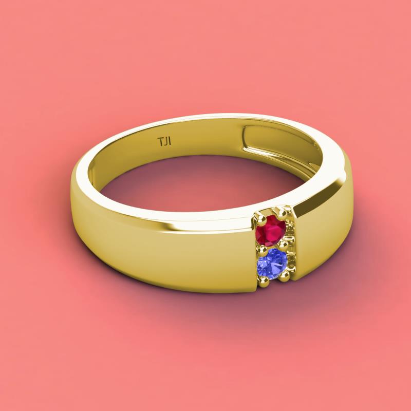 Round Ruby and Tanzanite 0.20 ctw High Polished 2 Stone Men Wedding Band 10K Yellow Gold More Details ...