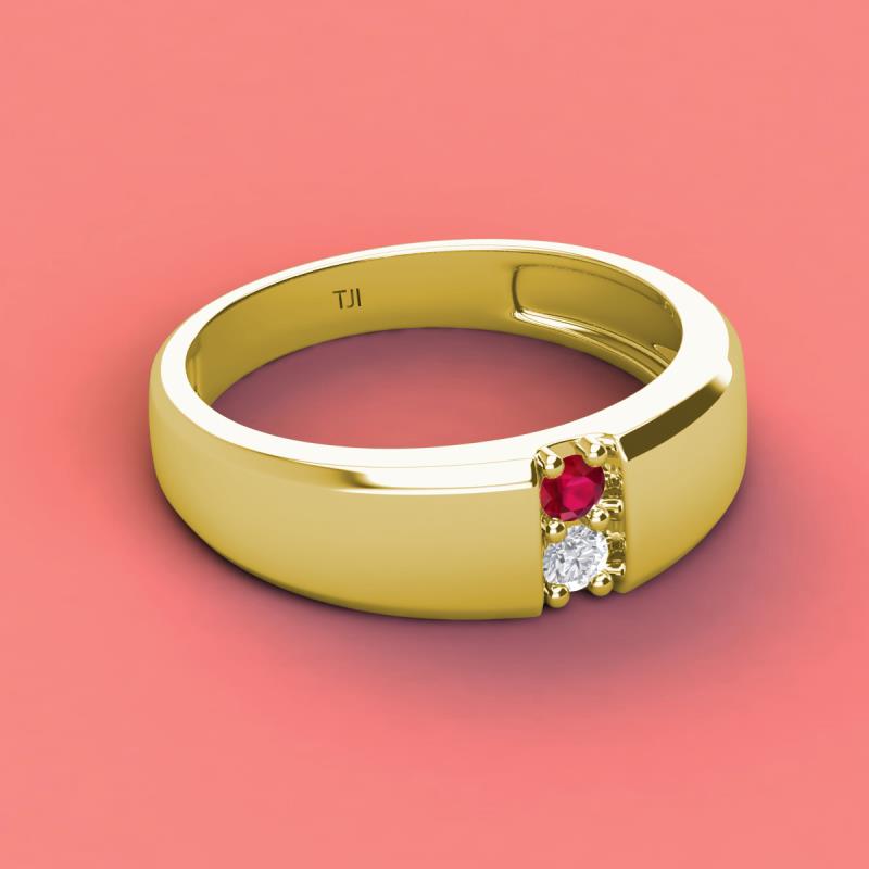 Round Ruby and White Sapphire 0.28 ctw High Polished 2 Stone Men Wedding Band 14K Yellow Gold More Details ...