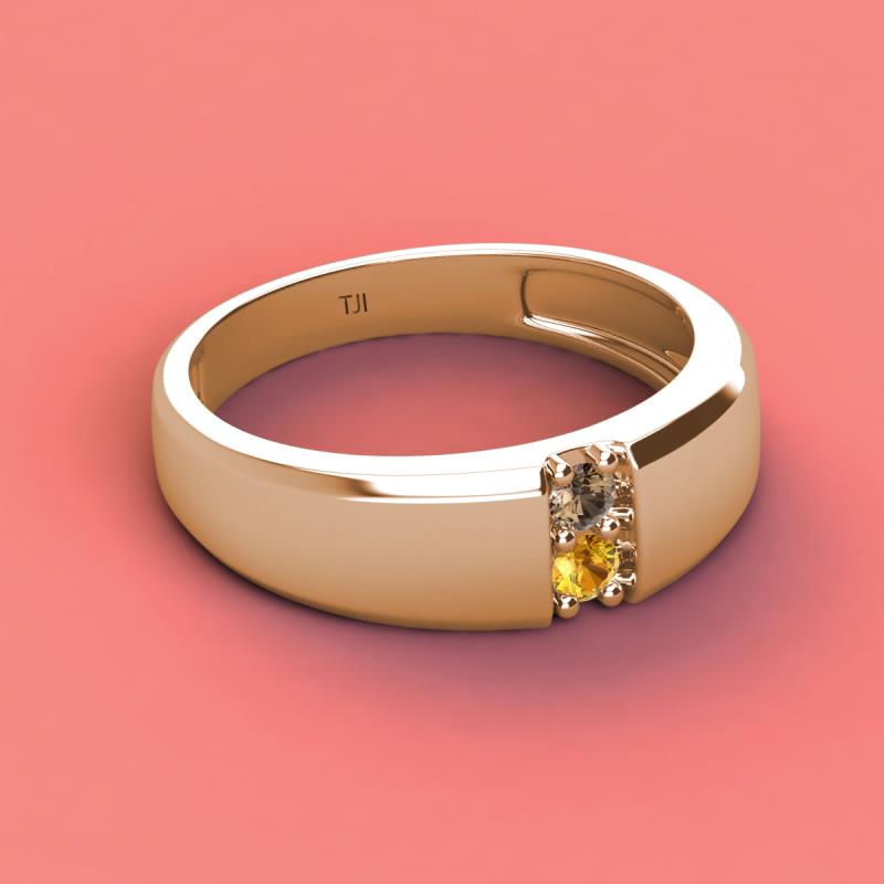 Round Smoky Quartz and Citrine 0.18 ctw High Polished 2 Stone Men Wedding Band 14K Rose Gold More Details ...