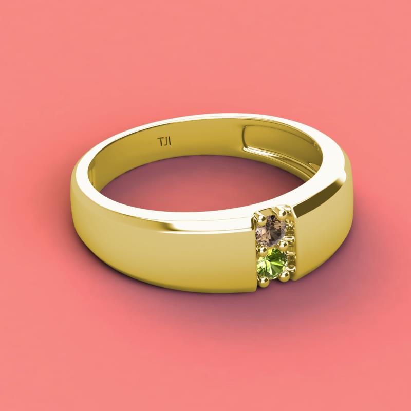Round Smoky Quartz and Peridot 0.22 ctw High Polished 2 Stone Men Wedding Band 14K Yellow Gold More Details ...