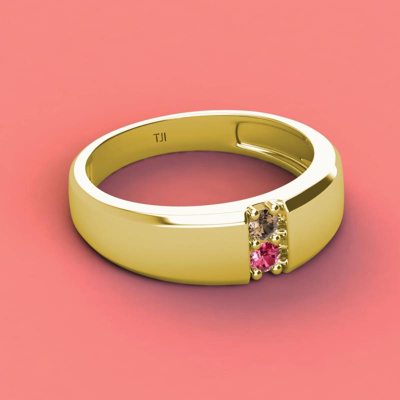 Round Smoky Quartz and Pink Tourmaline 0.18 ctw High Polished 2 Stone Men Wedding Band 18K Yellow Gold More Details ...