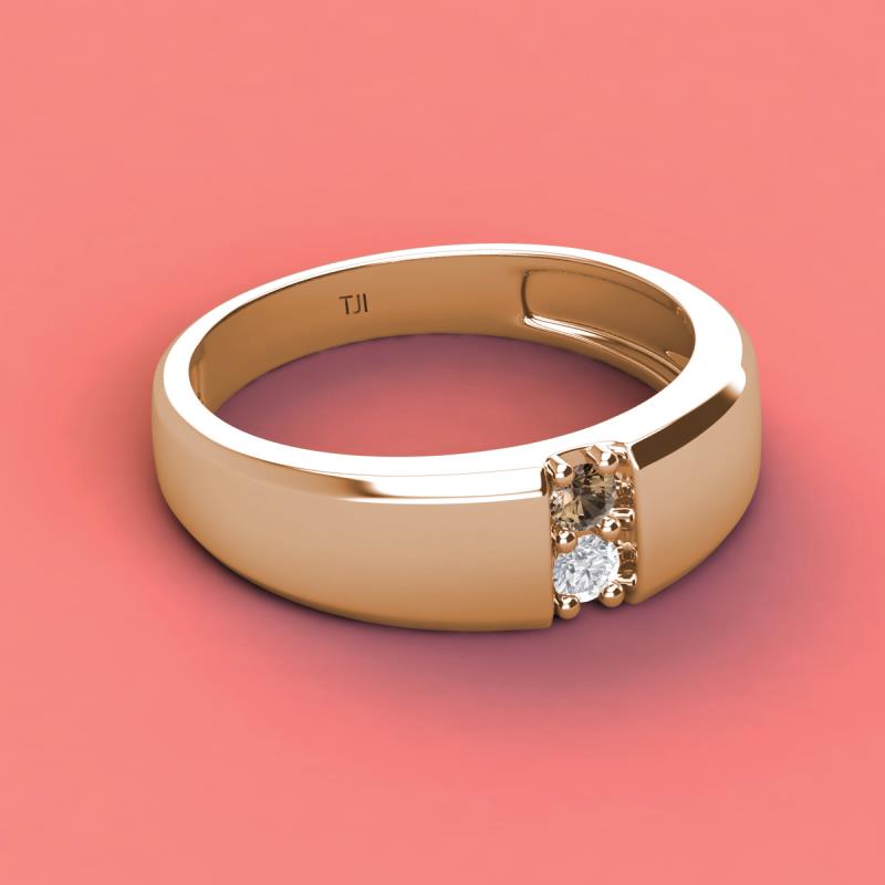 Round Smoky Quartz and White Sapphire 0.27 ctw High Polished 2 Stone Men Wedding Band 18K Rose Gold More Details ...