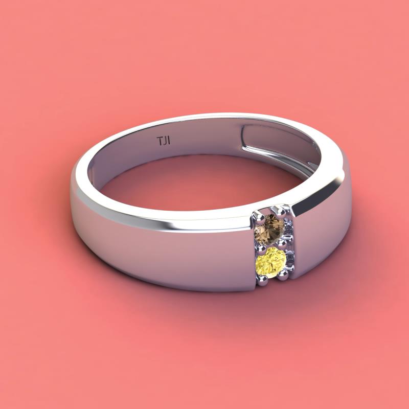 Round Smoky Quartz and Yellow Sapphire 0.27 ctw High Polished 2 Stone Men Wedding Band 10K White Gold More Details ...