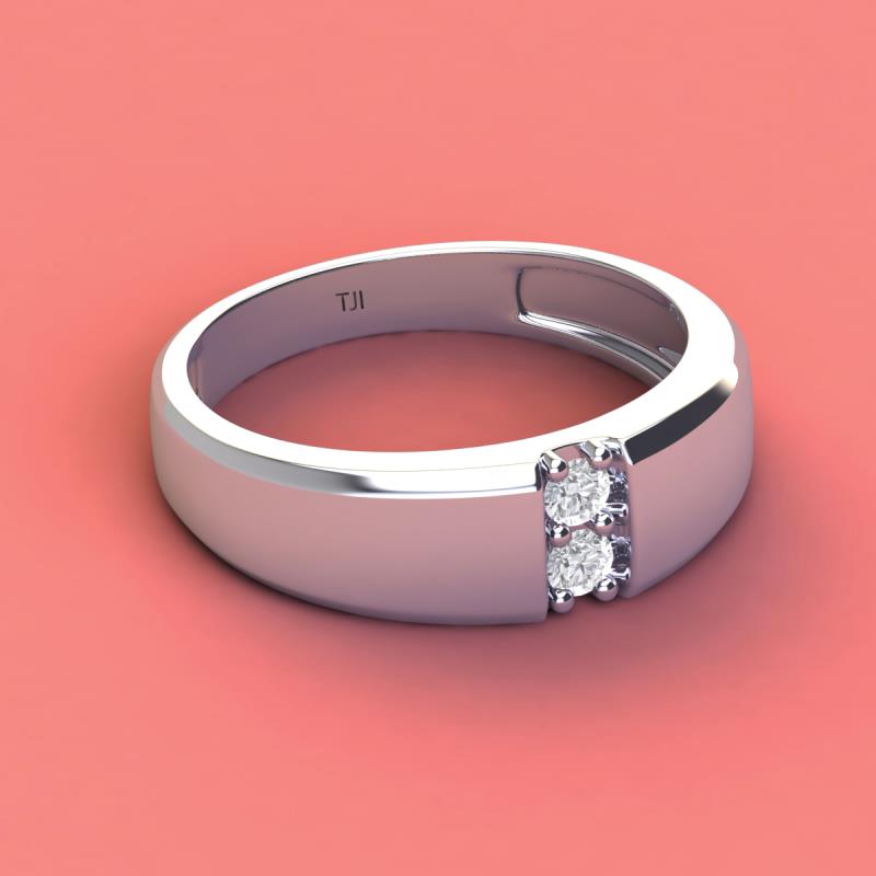Round White Sapphire 0.34 ctw High Polished 2 Stone Men Wedding Band 14K White Gold More Details ...