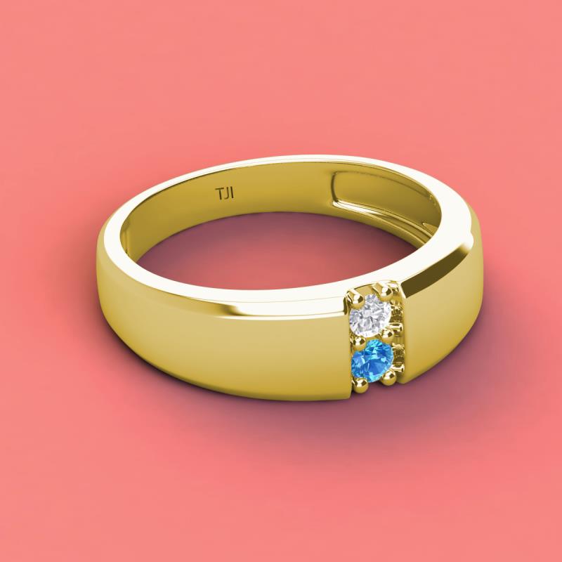 Round White Sapphire and Blue Topaz 0.26 ctw High Polished 2 Stone Men Wedding Band 10K Yellow Gold More Details ...