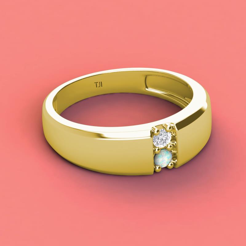 Round White Sapphire and Opal 0.23 ctw High Polished 2 Stone Men Wedding Band 18K Yellow Gold More Details ...