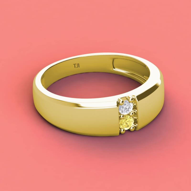 Round White Sapphire and Yellow Sapphire 0.34 ctw High Polished 2 Stone Men Wedding Band 10K Yellow Gold More Details ...