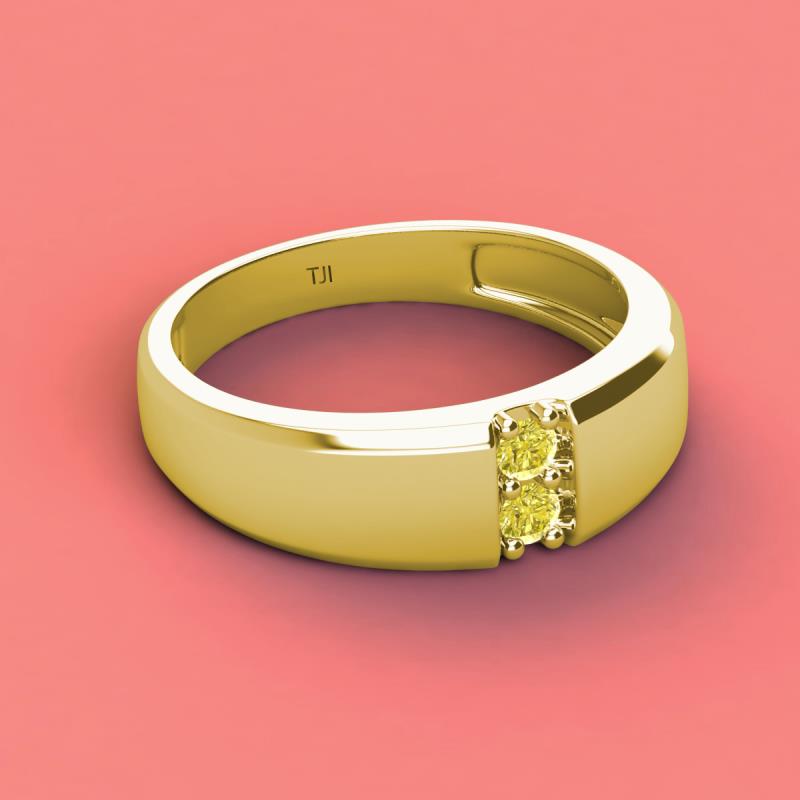 Round Yellow Diamond 0.20 ctw High Polished 2 Stone Men Wedding Band 18K Yellow Gold More Details ...