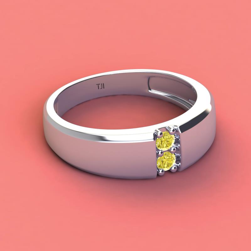 Round Yellow Diamond 0.20 ctw High Polished 2 Stone Men Wedding Band 925 Sterling Silver More Details ...