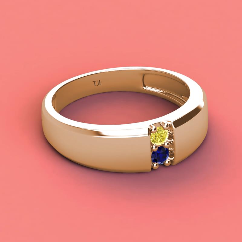 Round Yellow Diamond and Blue Sapphire 0.21 ctw High Polished 2 Stone Men Wedding Band 18K Rose Gold More Details ...