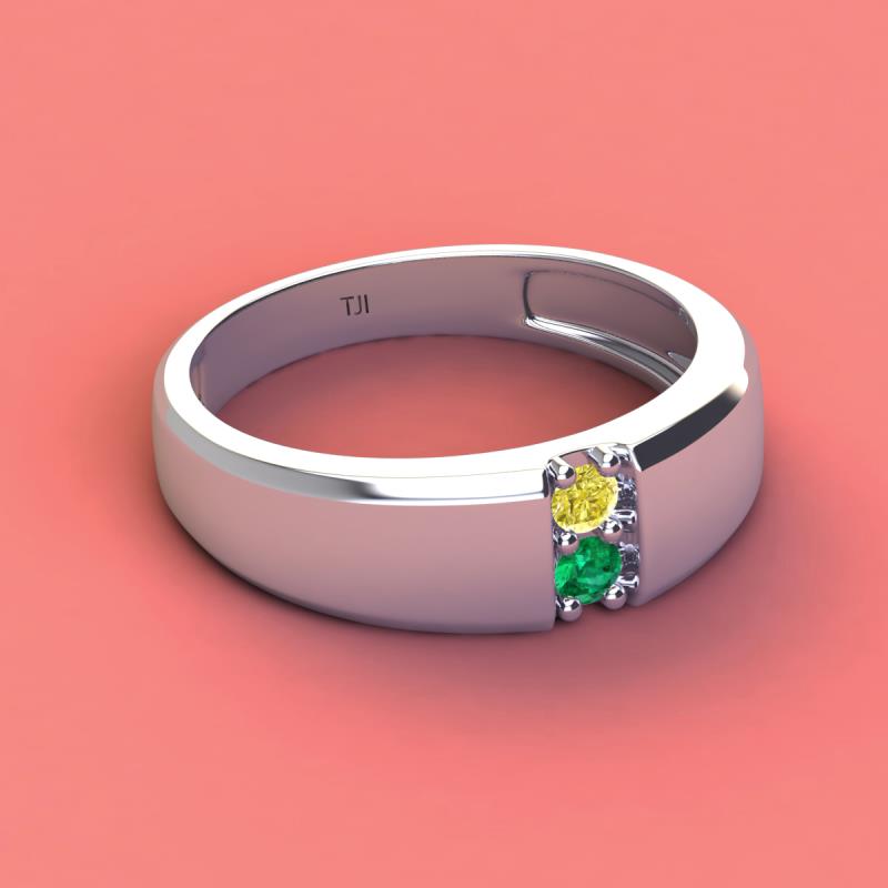 Round Yellow Diamond and Emerald 0.18 ctw High Polished 2 Stone Men Wedding Band 18K White Gold More Details ...