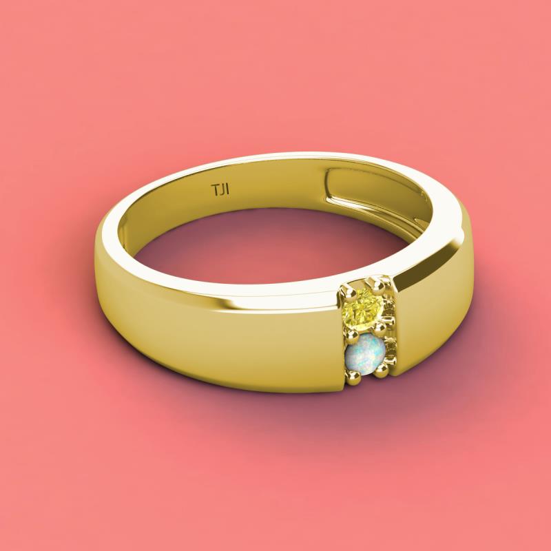 Round Yellow Diamond and Opal 0.16 ctw High Polished 2 Stone Men Wedding Band 14K Yellow Gold More Details ...