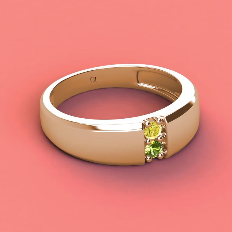 Round Yellow Diamond and Peridot 0.22 ctw High Polished 2 Stone Men Wedding Band 14K Rose Gold More Details ...