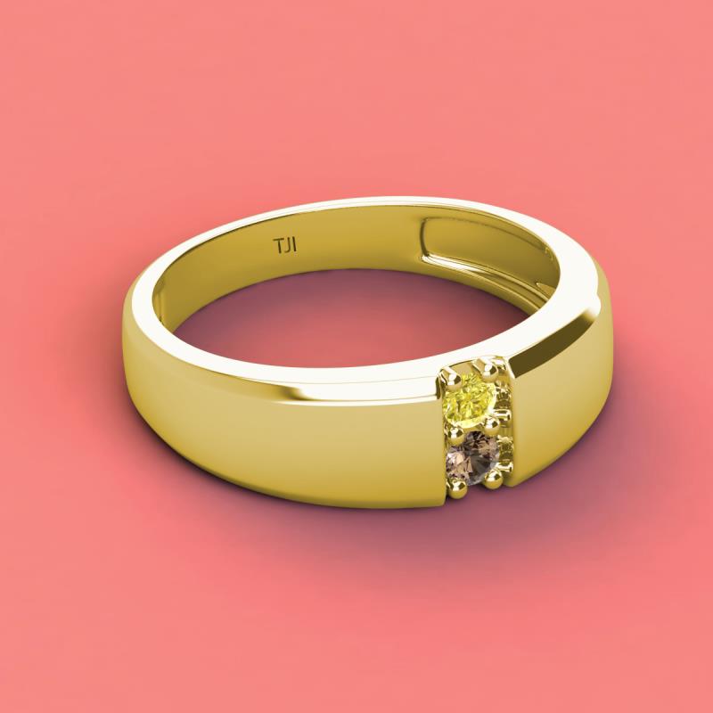 Round Yellow Diamond and Smoky Quartz 0.20 ctw High Polished 2 Stone Men Wedding Band 14K Yellow Gold More Details ...
