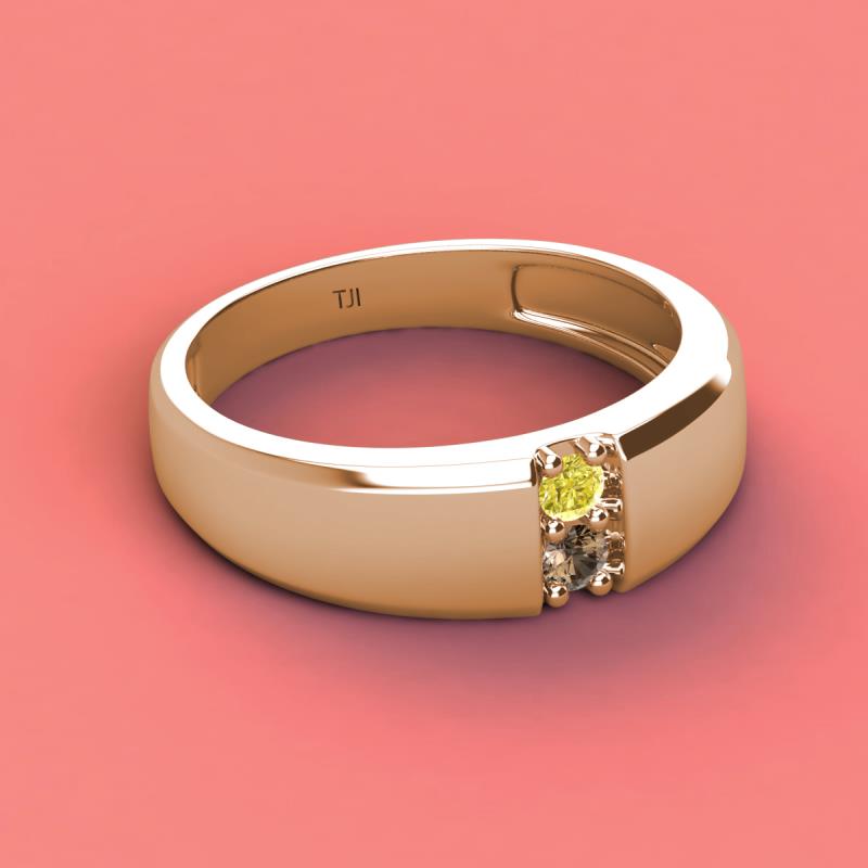 Round Yellow Diamond and Smoky Quartz 0.20 ctw High Polished 2 Stone Men Wedding Band 10K Rose Gold More Details ...