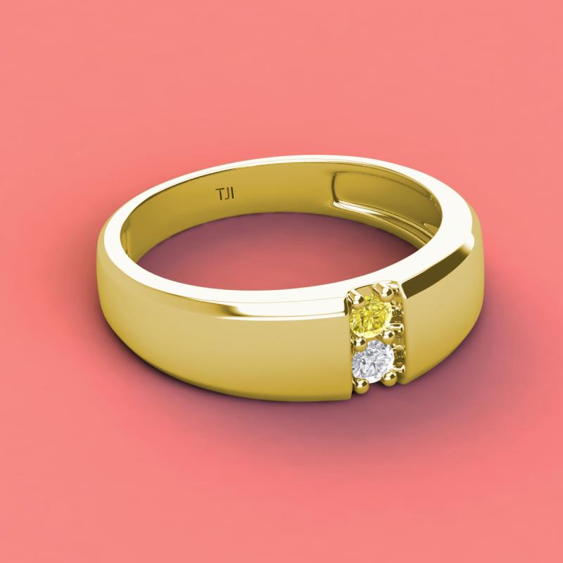 Round Yellow Diamond and White Sapphire 0.27 ctw High Polished 2 Stone Men Wedding Band 18K Yellow Gold More Details ...